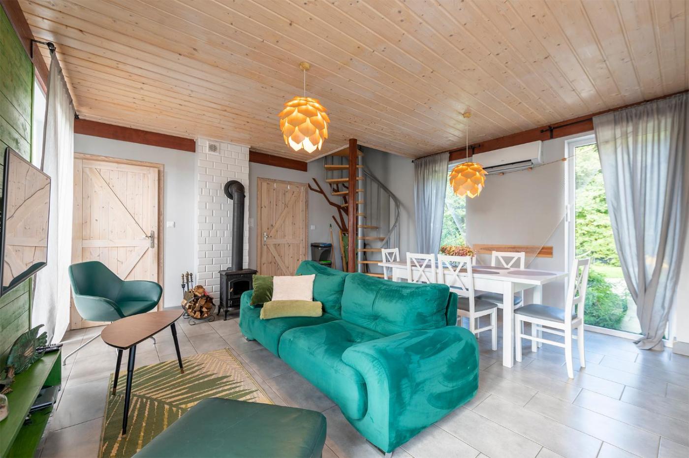 Dom z 3 sypialniami. This holiday homes special features are the sauna and the fireplace. Featuring a private entrance, this air-conditioned holiday home consists of 1 living room, 3 separate bedrooms and 2 bathrooms with a shower and a bidet. Guests will find a stovetop, a refrigerator, a dishwasher and kitchenware in the well-fitted kitchen. The holiday home also offers a barbecue. Boasting a terrace with garden views, this holiday home also provides soundproof walls and a flat-screen TV with streaming services. The unit offers 6 beds. Dom wakacyjny - 7 osobowy. Powierzchnia pokoju ok.: 90 mkw. ;